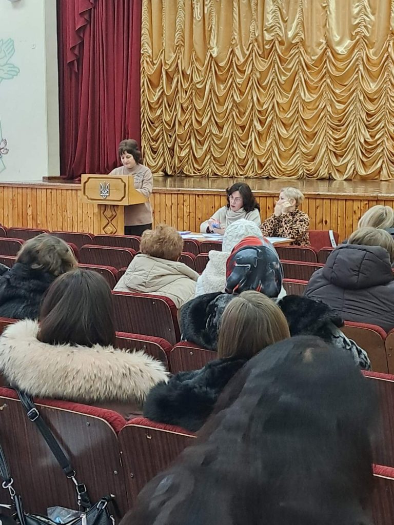 За результатами проведення у грудні 2025 року моніторингу  стану організації харчування у закладах освіти громади, попередження спалахів кишкових інфекцій, забезпечення дітей якісним, збалансованим та безпечним харчуванням 08.01.2026 року відбулася нарада за участі представників Головного управління Держпродспоживслужби в Хмельницькій області Марії Міцкевич та Людмили Герасимович, відповідальних осіб за ведення документації з організації харчування, комірників, кухарів, медичних працівників закладів освіти.