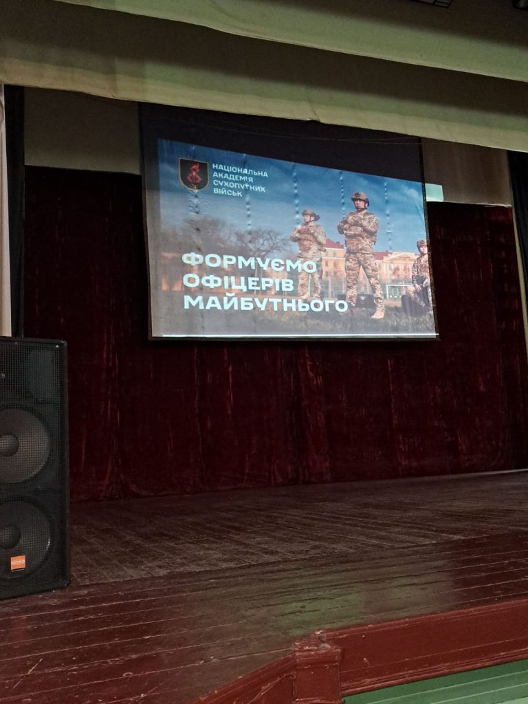 13.02.2026 року на базі Старокостянтинівського 42 Гарнізонного Будинку офіцерів пройшов профорієнтаційний захід для учнів 11 класів Старокостянтинівської міської територіальної громади з представниками Національної академії сухопутних військ «Формування офіцерів майбутнього» з метою якісного відбору кандидатів на вступ до вищих військових навчальних підрозділів вищої освіти та наукових установ Збройних сил України.